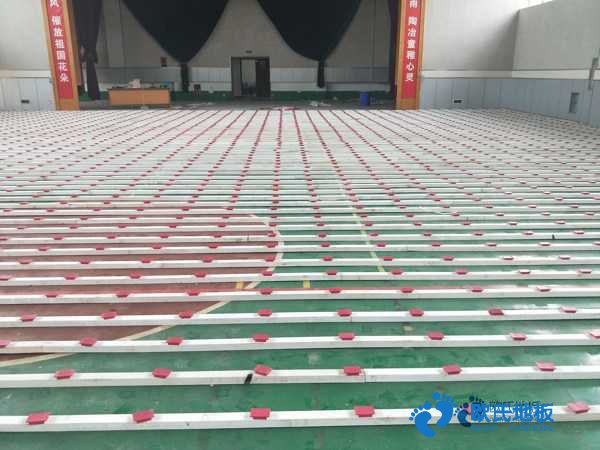 籃球場木地板地基表面硬度要求不低于1.2MPa。地基混凝土強度不能低于標準C25要求?;鶎雍蕬?5CM雙層龍骨減震結構),我國現(xiàn)場檢測達到DIN標準的木地板場館不足5%。試問如果一個體重為80公斤的運動者,當他做起跳落地動作時,作用于地面的沖擊力值為其自身重量的5.5倍,即440公斤,DIN18032標準規(guī)定沖擊吸收需達到≥53%(即233公斤)的運動地板才是合格的,那么只有幾毫米厚懸浮拼裝地板和PVC地板要將233公斤沖擊力吸收而不造成對運動者的身體是不可能的!歐氏運動木地板工程師指出,體育場館工程商和甲方朋友,明確了專業(yè)運動木地板檢測質量標準。就等于安上了明亮的眼睛。有了這雙眼睛,就可以采購到專業(yè)質量可造。